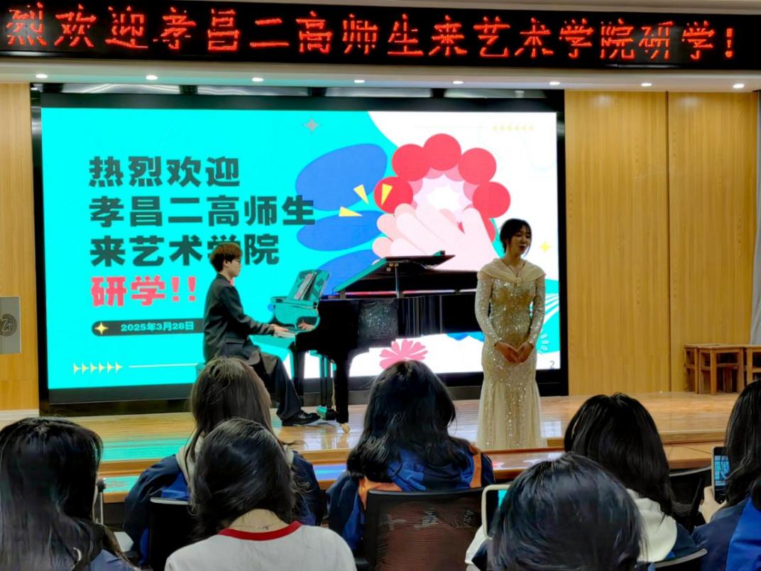 (通讯员:黄婷婷)2025年3月28日,湖北第二师范学院艺术学院迎来孝昌二高艺术特长生,艺术学院为此次研学设计了极具针对性的活动内容,带领师生们共赴一场艺术探索盛宴。此举为深化美育大中小一体化教育、拓展学生艺术视野搭建了重要桥梁。