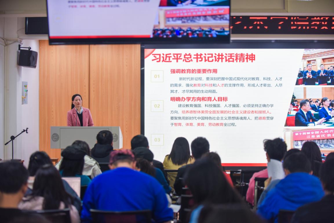 学院党委书记章倩带领大家学习了2025年全国两会精神,要求教职工们要加强学习,把思想和行动统一到党中央的决策部署上来。章书记分析了当前社会就业形势,要求全体教师要提高育人本领和教学质量,要加强对毕业生的就业指导帮扶,要加强学科专业建设、密切对接社会需求。