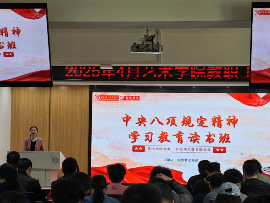 校党委副书记刘昕讲授中央八项规定精神专题党课,带领大家学习了中央八项规定的背景、内容、中央八项规定实施以来的经验成效以及自身亲历感受,强调作风建设对学院发展的重要作用,他号召全体党员干部要以担当、务实的作风,推动学院高质量发展。