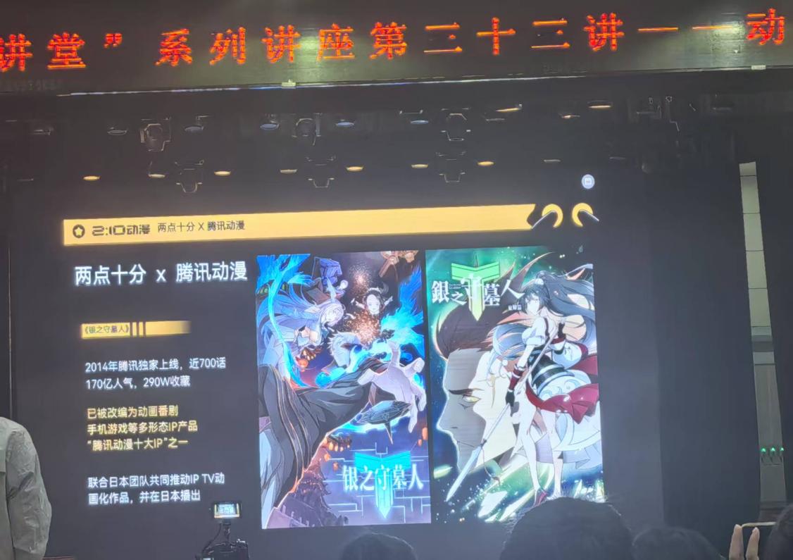 4月17日18:00 - 19:30,在大礼堂举办的讲座中,我院杰出校友、两点十分创始人之一、动画制片人陈赵老师带来“动漫之路”主题分享。陈赵老师以《银之守墓人》为例,这部2014年腾讯独家上线的作品,凭借近700话内容收获170亿人气与290w收藏,成为“腾讯动漫十大IP”之一。它不仅衍生出动画番剧、手机游戏等多形态IP产品。讲座中,陈赵老师深入剖析其角色设计、世界观架构等美学元素,让同学们看到动漫在跨文化传播中的魅力。