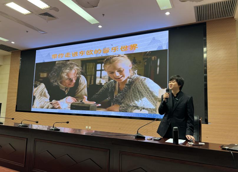 (通讯员 吴凡)4月28日下午,湖北第二师范学院2025美育大讲堂第十一讲,在新图书馆一号报告厅成功举办。本次活动特邀合唱指挥博士研究生、全波兰指挥大赛获奖者刘峻材主讲,刘峻材以“带你走进东欧的音乐世界”为题,引领大家一起领略东欧音乐文化的独特魅力,感受音符背后的文化底蕴。艺术学院青年合唱指挥教师吴凡担任主持,《大学美育》课程学生近300人参加活动。