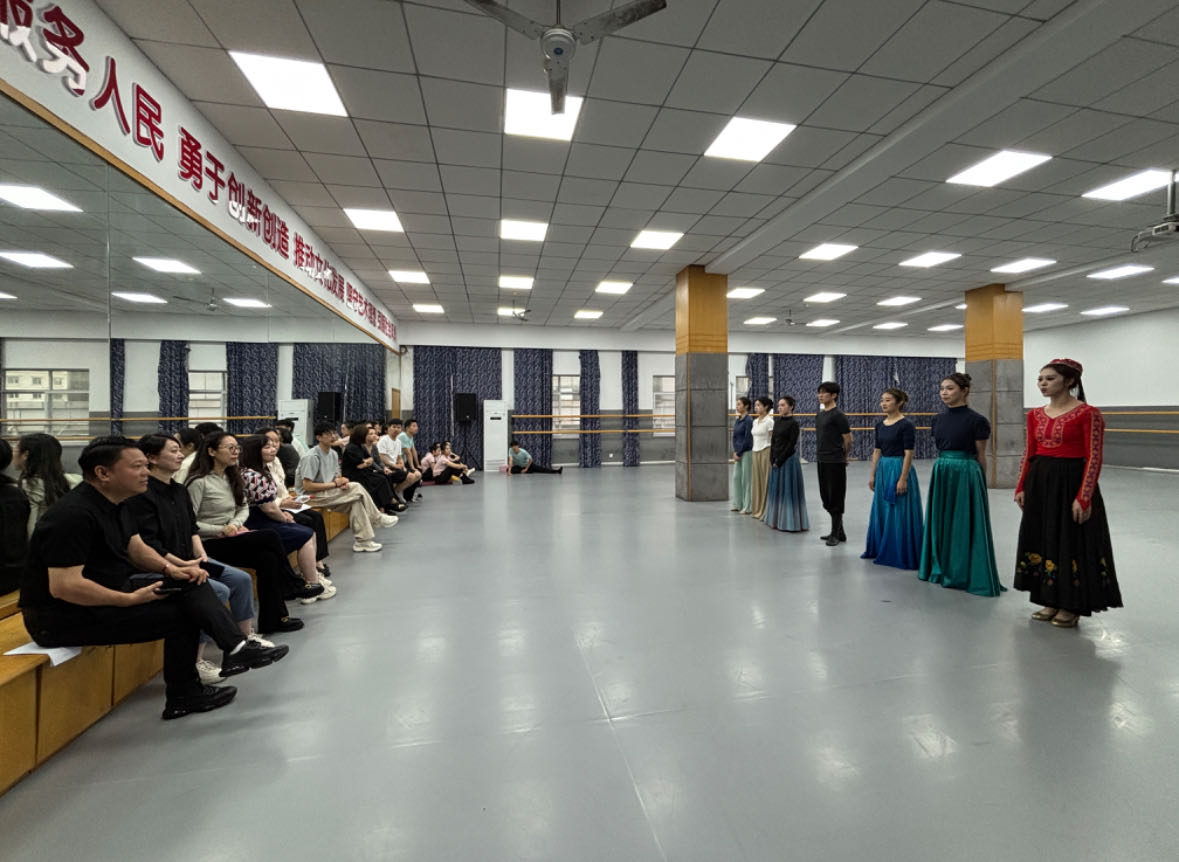 会后,在艺术团负责人的带领下,学院师生一行走进舞蹈排练厅,现场观摩应聘人员的专业展示。高晋主任与艺术团编导就舞蹈编排、艺术创新等专业领域展开交流,并对参演学生的表现进行专业点评,为学生们提供了宝贵的实践指导建议。