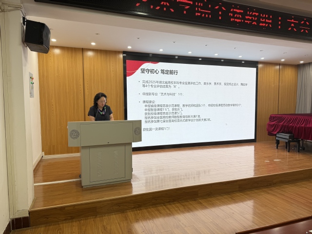 副院长刘畅总结汇报了上学期的教学工作目标任务完成情况,对本学期教学工作进行部署,她表示将继续夯实日常教学管理工作,严控论文答辩质量,推进新专业申报、数智课程建设与实习改革,以创新举措推动教学质量再提升。
