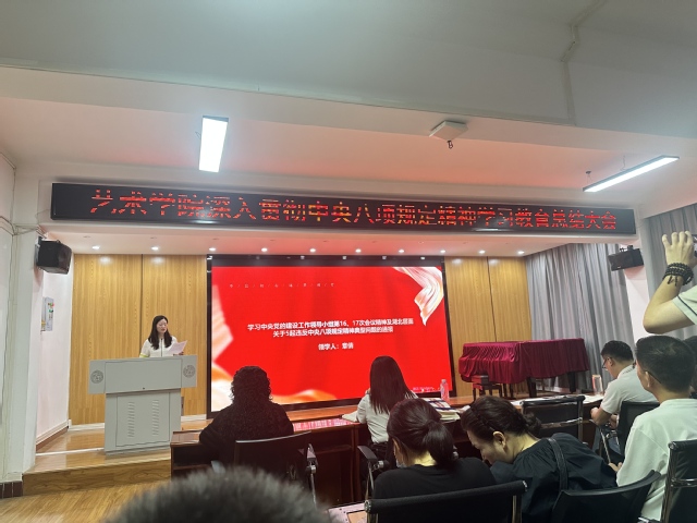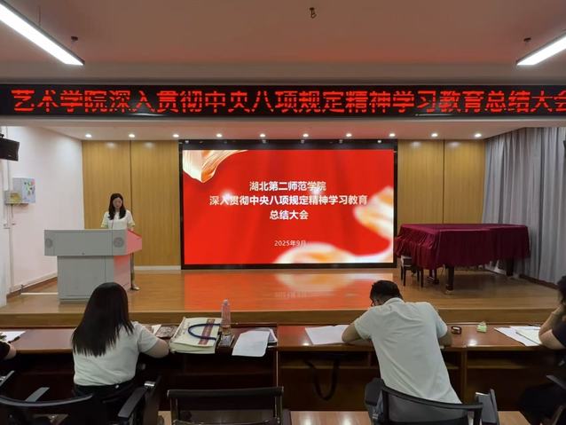 9月15日,艺术学院在九号教学楼召开深入贯彻中央八项规定精神学习教育总结会。学院全体党员参加会议,学院党委书记章倩主持会议并讲话。