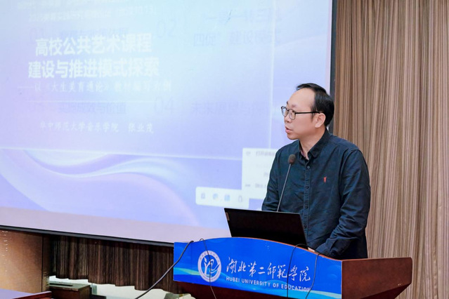 (通讯员寇琰)2025年10月13日星期一下午14:00,“新时代·新美育·新使命——美育赋能教育高质量发展2025美育实践研究高峰论坛”在湖北第二师范学院一号会议室隆重举行。华中师范大学音乐学院副院长张业茂教授以“高校公共艺术课程建设与推进模式探索——以《大学生美育通论》教材编写为例”为题做了专题报告,深入探讨了高校美育的核心要义与实践路径,并系统介绍了该校在美育实践中的创新建设模式。