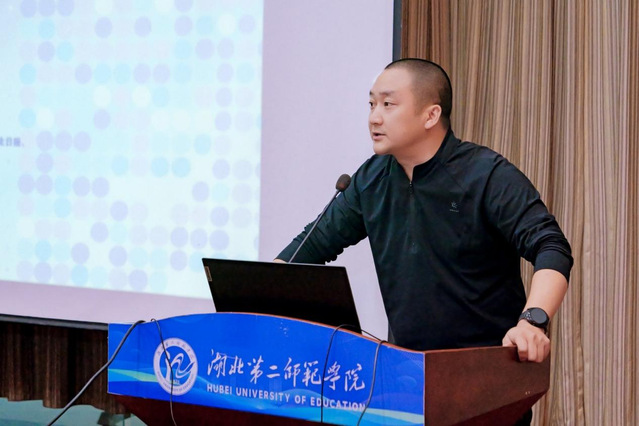 (通讯员 杨姝媞)2025年10月13日星期一下午,在湖北第二师范学院举办的“新时代·新美育·新使命——美育赋能教育高质量发展2025美育实践研究高峰论坛”现场,由江汉大学音乐学院副院长、董勇副教授带来了《以美育唤醒乡土:从〈土家细妹的灯歌情〉看乡村教育的未来》的主题发言。