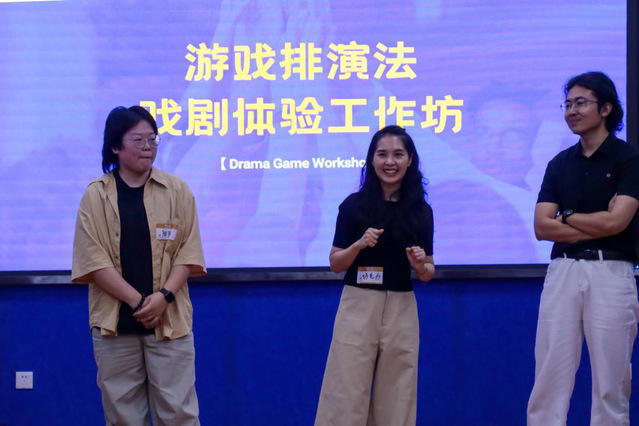 随后,参与者带着上半场积累的游戏经验投入排演:有人用“角色代入游戏”琢磨角色神态,有人借“情境 互动游戏”设计对话,还有人依“创意拓展游戏”思路制作道具。从游戏到演出无缝衔接,大家切实体会到游戏排演法的应用逻辑,现场既专注又不失互动活力。