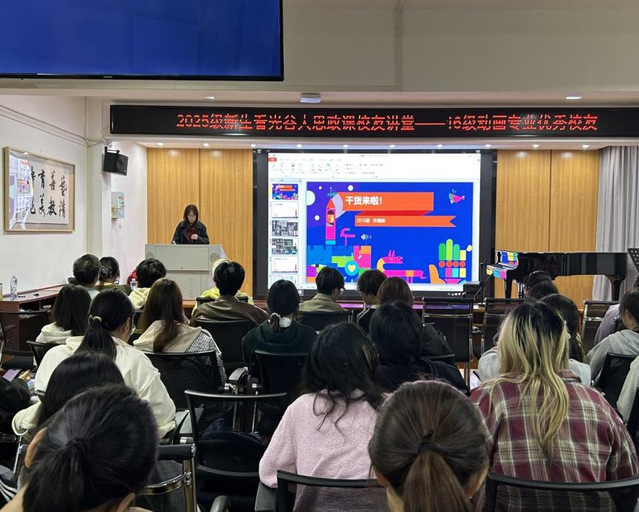 本网讯(通讯员黄麟)11月15日下午2点,在艺术学院9210举行了新生看光谷大思政课校友讲堂。本次活动荣幸邀请到了16届动画专业优秀校友李娟娟作为主讲人。