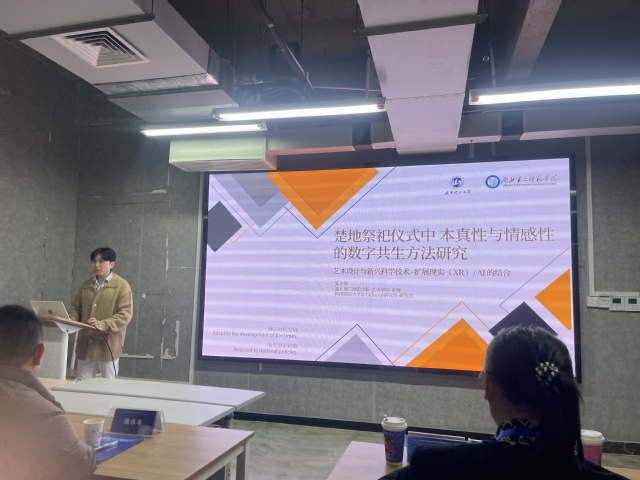 20251122-23日,由武汉理工大学主办的“2025年后人文语境下的艺术学学科发展国际研讨会”在武汉隆重召开。本次大会汇聚了北京大学、清华大学、上海交通大学、东南大学、同济大学、中国艺术研究院、北伊利诺大学、芝加哥艺术学院等国内外众多艺术学、设计学及数字人文领域的专家学者,共同探讨人工智能时代艺术学科面临的机遇与挑战。湖北第二师范学院艺术学院教师张文熠受邀参会,并作了题为《楚地祭祀仪式中本真性与情感性的数字共生方法研究》的主题发言。
