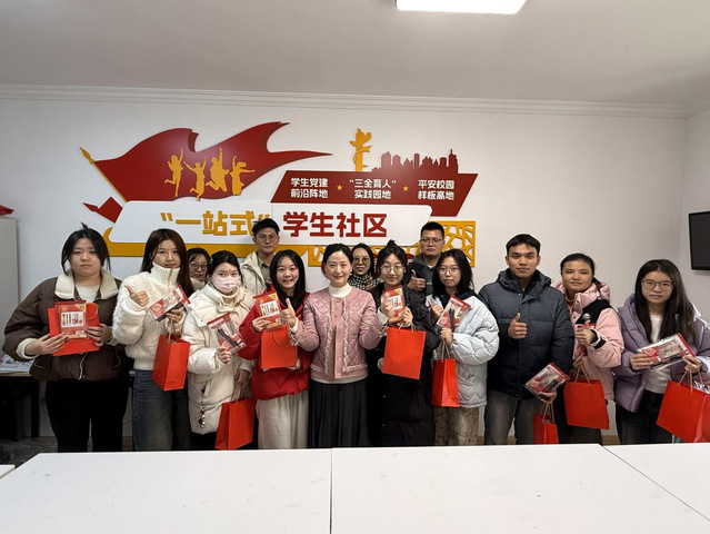 本网讯(通讯员:张子晗)2025年12月19日中午,冬日暖阳洒满校园,艺术学院党委书记章倩带领全体辅导员深入一站式学生社区,开展考研学子慰问活动,为即将踏上考场的学子们送上暖心关怀与真挚祝福。