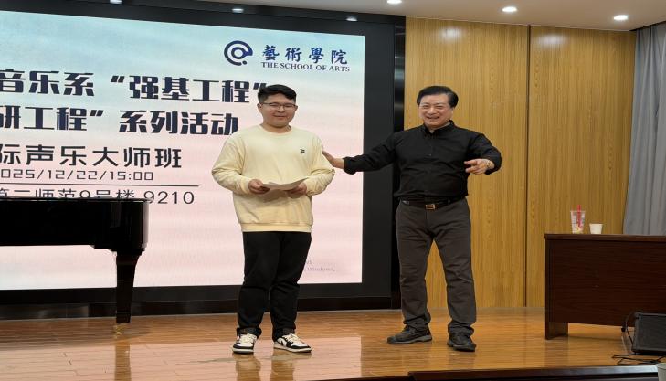 (通讯员 何雨晨)2025年12月22日,湖北第二师范学院艺术学院举行了韩国著名男中音歌唱家崔钟寓教授主讲的声乐大师班。此次活动由音乐系主任韦也纳主持,作为学院“强基助研工程”的重点项目。为深入践行艺术学院师范专业“艺精善教”的精神,强化音乐学专业学生在专业技能中声乐演唱技能的核心竞争力,本次大师班以“一对一”精准指导为核心形式,直面声乐专业教学中的个体化难题,为我院青年教师与学生提供了一次难得的技艺淬炼与境界提升之旅。