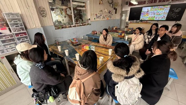 实习启动当日,在基地校指导教师带领下,实习生们深入了解了华中科技大学附属小学的办学环境、美术教学场所以及校园艺术文化建设情况。通过实地参观美术教室、学生艺术作品展示区等教学空间,同学们切身感受了附小浓厚的美育氛围。随后,校院双方围绕教育实习安排、教学指导机制、课堂管理要求及学生发展特点等主题开展座谈交流。附小一线教师结合自身教学经验,就小学美术课程实施、课堂组织、教学设计、学生评价与个别指导等方面进行了细致分享,帮助实习生进一步明确岗位职责、熟悉教学规范、把握小学美术教育的内在规律。