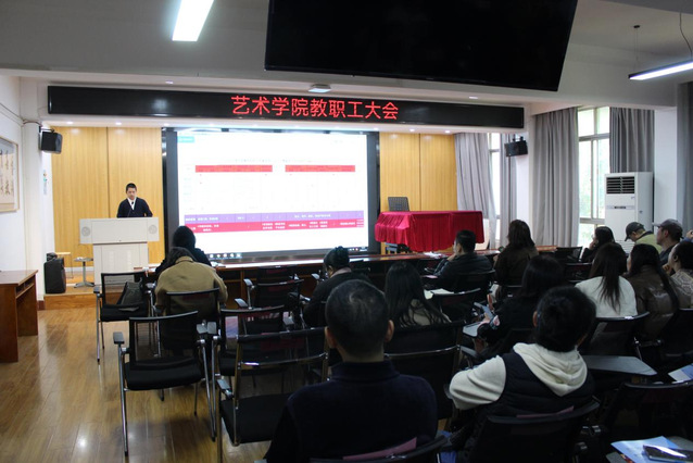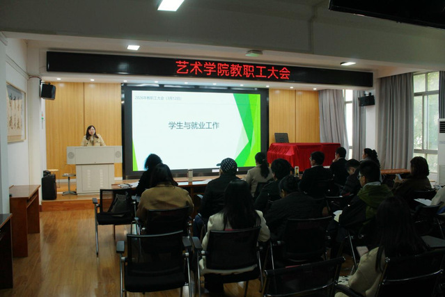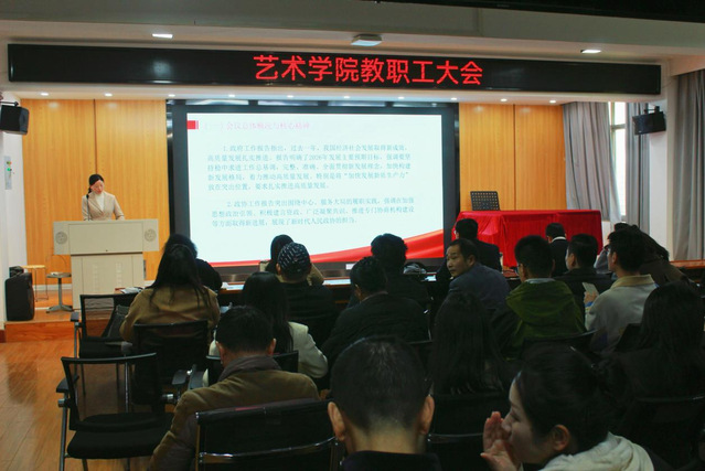 (通讯员:张子晗)2026年3月12日13时,艺术学院全体教职工大会在9210召开。会议由学院党委书记章倩主持,学院全体教职工齐聚一堂,深入学习两会精神,总结去年各项工作考核情况,部署年度重点任务,为学院2026年高质量发展谋篇布局、凝聚合力。