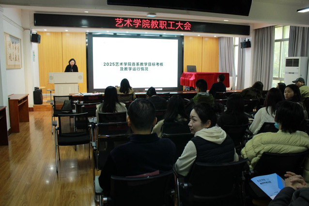 院长金波对艺术学院2025年各项工作开展全面复盘总结,系统梳理了学院过去一年在学科建设、科学研究、专业建设、人才培养、社会影响及建章立制等方面取得的丰硕成效,同时客观分析了学院发展进程中存在的问题与不足。结合学院发展实际与艺术学科特色,金波以“起步即冲刺、开局即决战”的奋进姿态,对2026年学院整体工作作出统筹部署,锚定申硕攻坚核心任务,明确了年度发展总体目标与工作思路,提出新学年工作要点,为学院各项工作有序推进、高质量发展指明了方向。