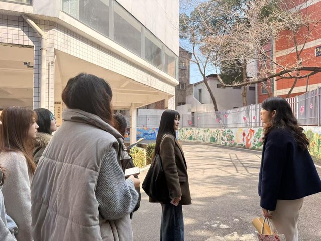 随后,师生一行在基地校教师带领下参观校园,实地了解学校育人环境和校园文化建设情况。洪山中学校园环境整洁有序,文化长廊特色突出,体现了学校注重环境育人、文化育人的办学特点。特别是校园中展示的往届实习美术教师墙绘作品,将校园文化建设与美育实践有机融合,不仅体现了基地校在美育浸润和校园环境建设方面的鲜明特色,也为美术学专业学生参与学校美育工作、发挥专业特长提供了真实实践场景。
